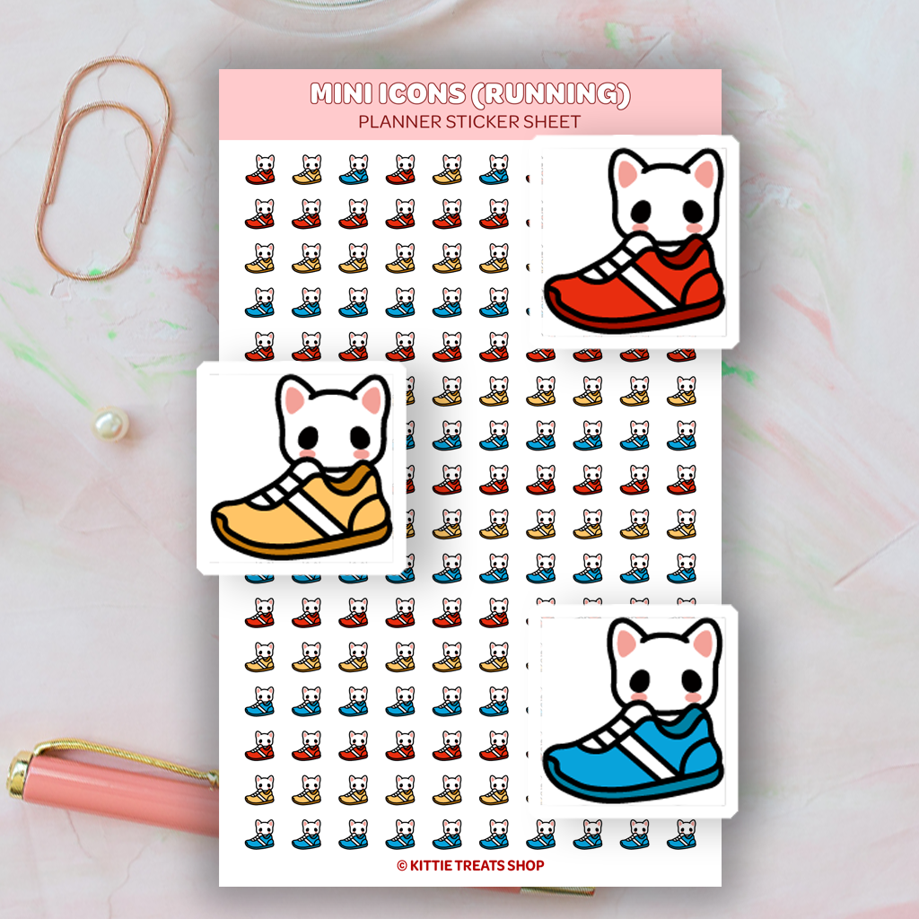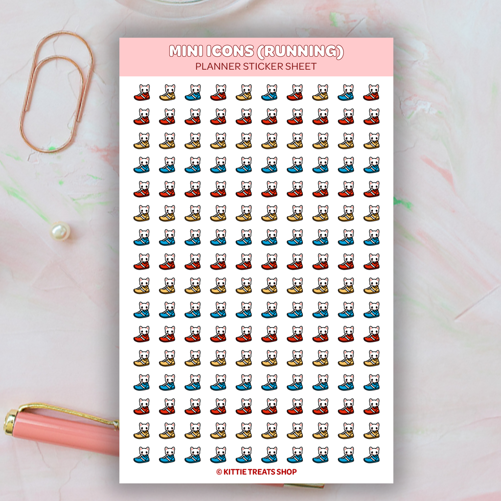This high-quality sticker sheet features 160 kawaii Running mini icon planner stickers!