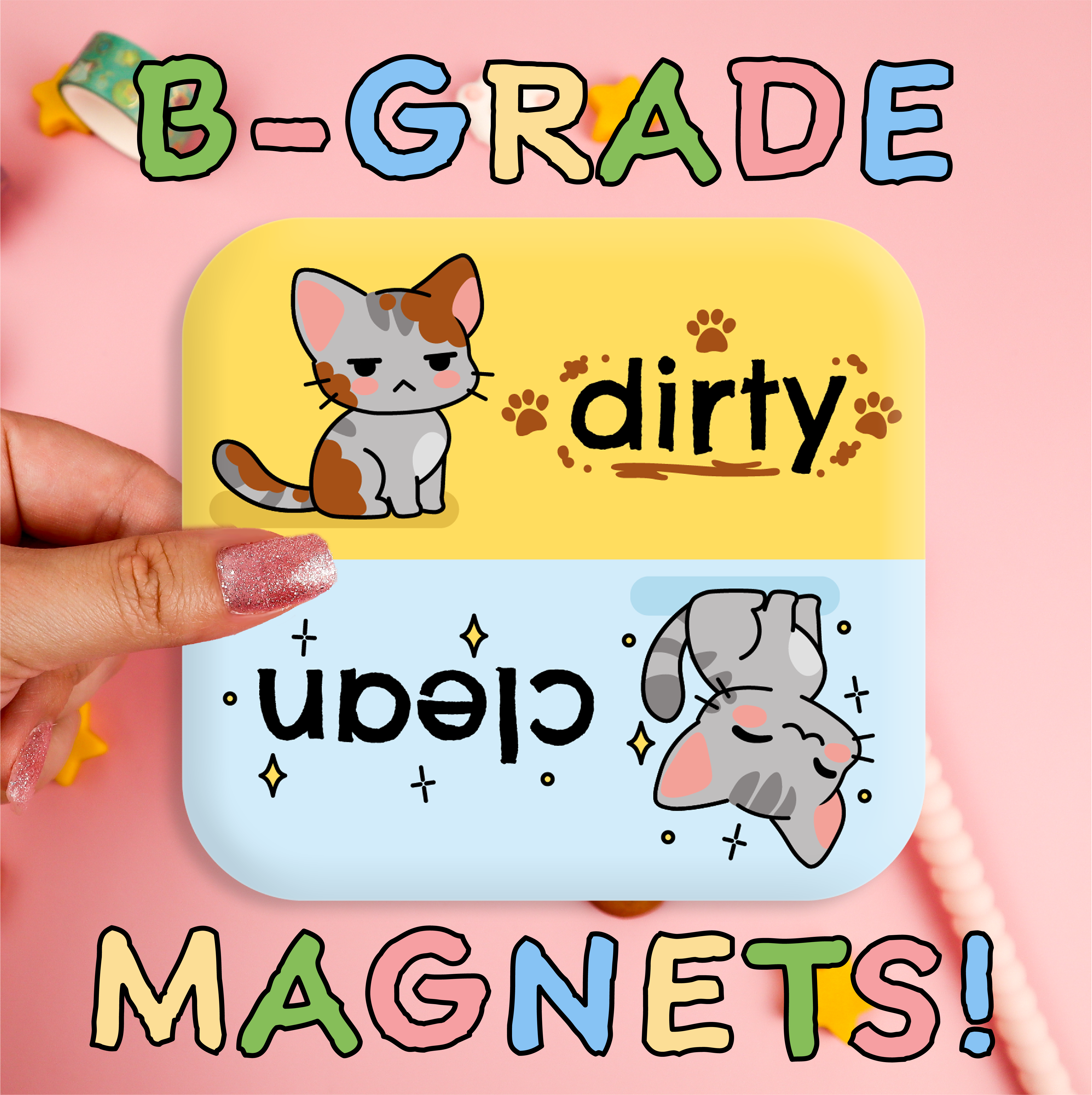 Looking for a great deal on our dishwasher magnets? Our B-grade magnets are the perfect solution! These magnets have minor cosmetic flaws like small dents or scratches, but their magnetic strength is still 100% intact and their cuteness levels remain untouched! You'll get the same useful, charming magnet you love, just with a little extra character.