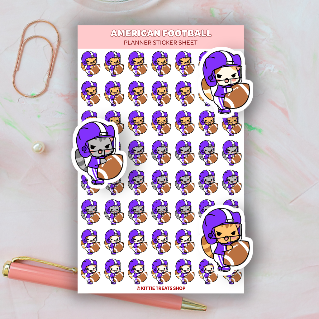 Perfect for bullet journaling and weekly planners, the sheet includes 3 adorable football playing kitties letting you know when it's time for your next football practice or game!
