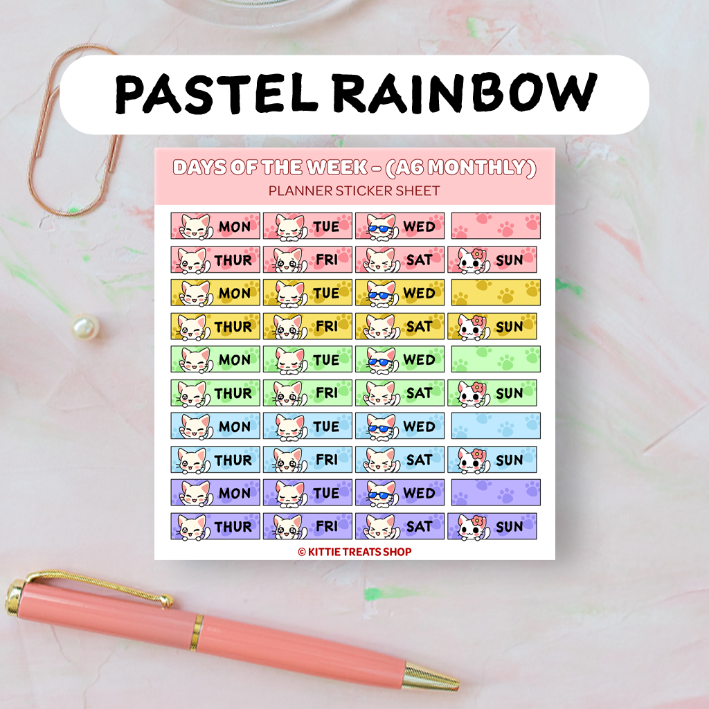 These adorable weekday planner stickers are intended to be used as beautiful, decorative overlays or inserts in your A6 sized planner.