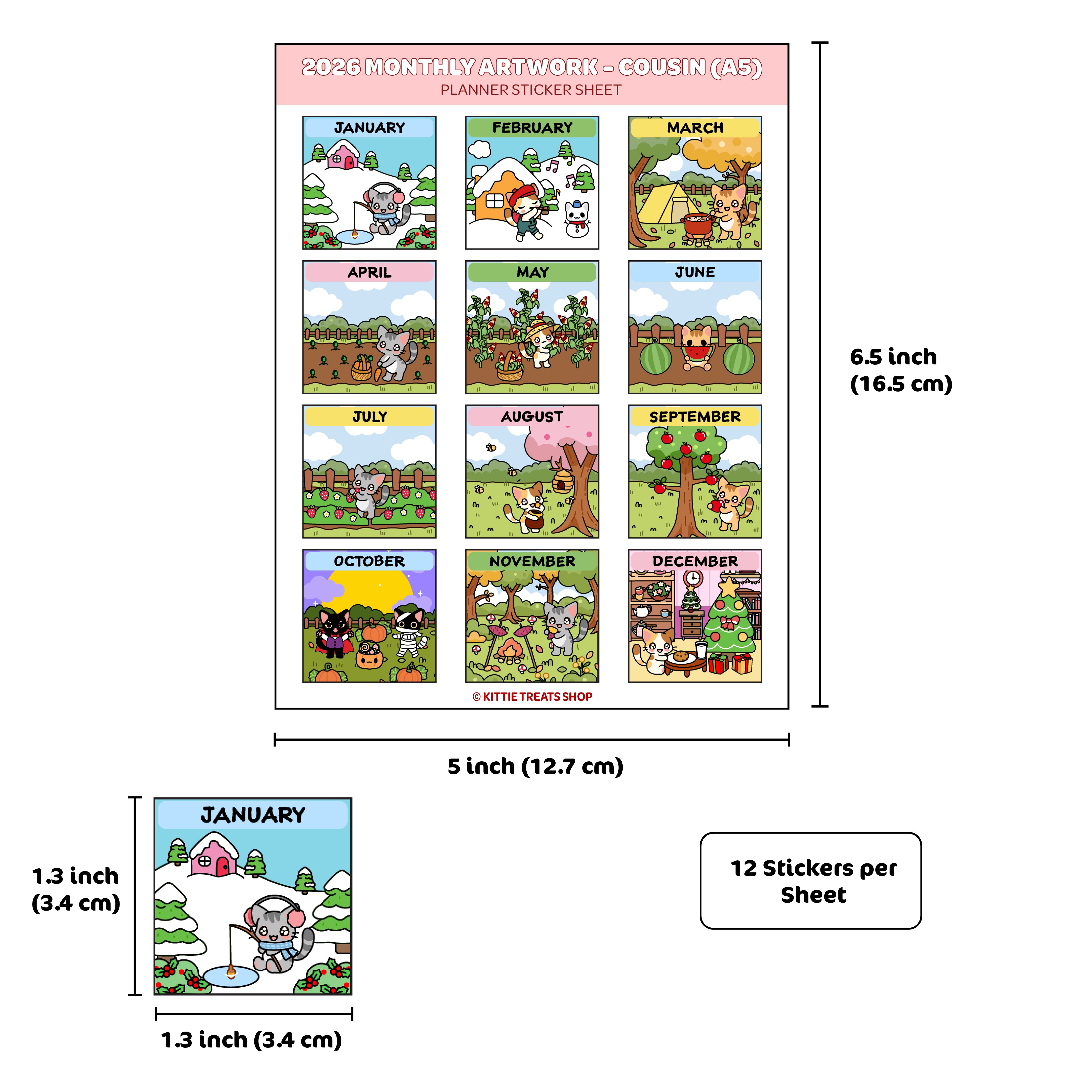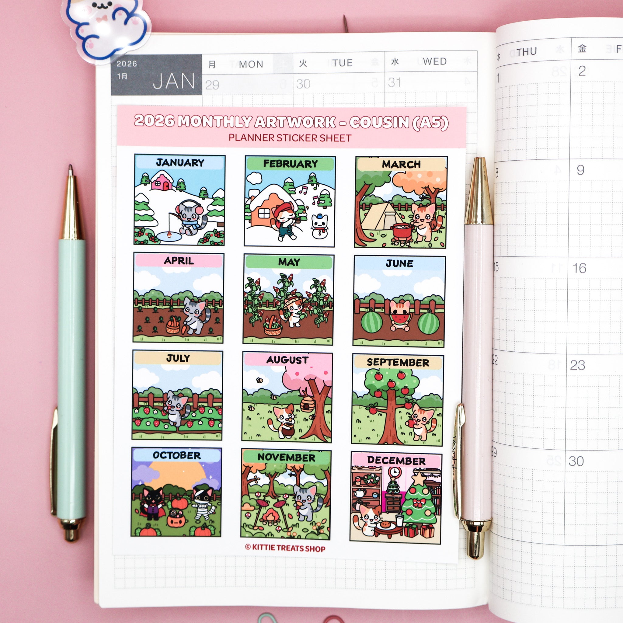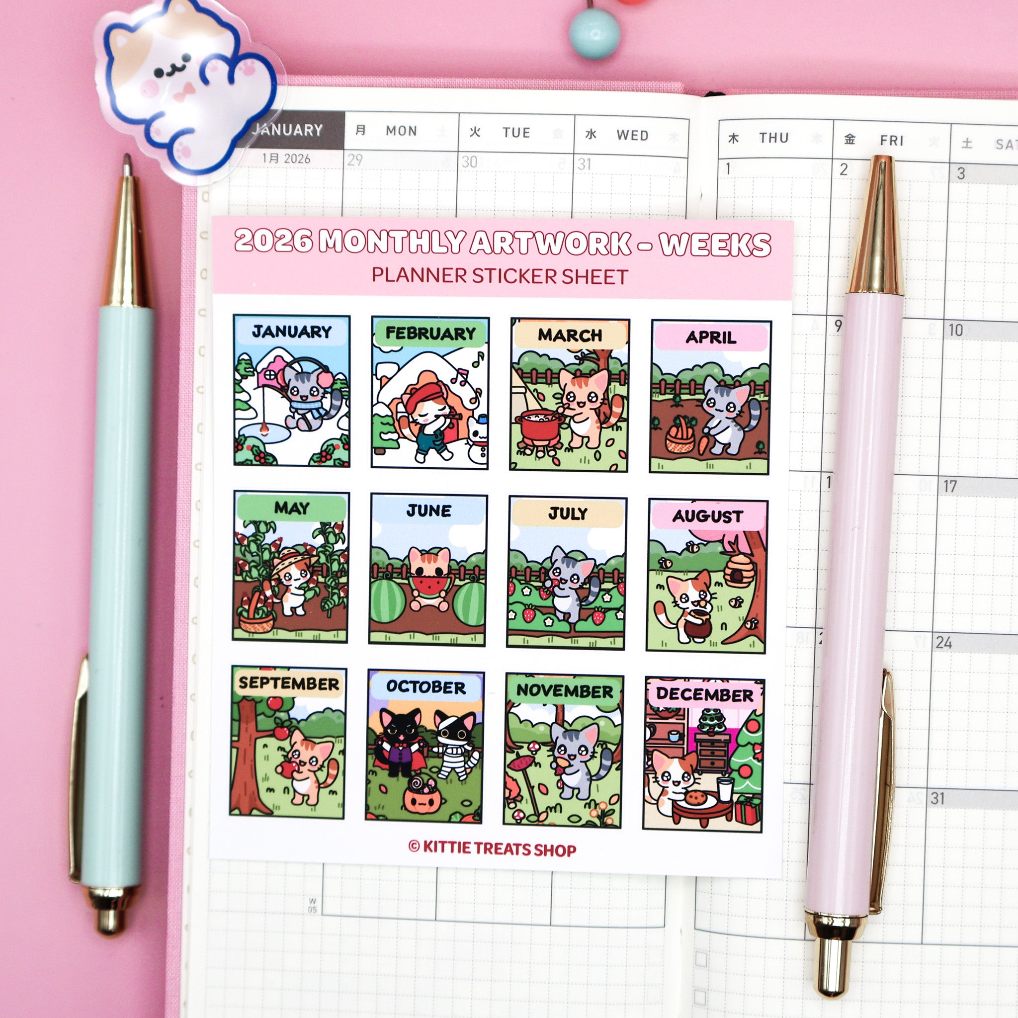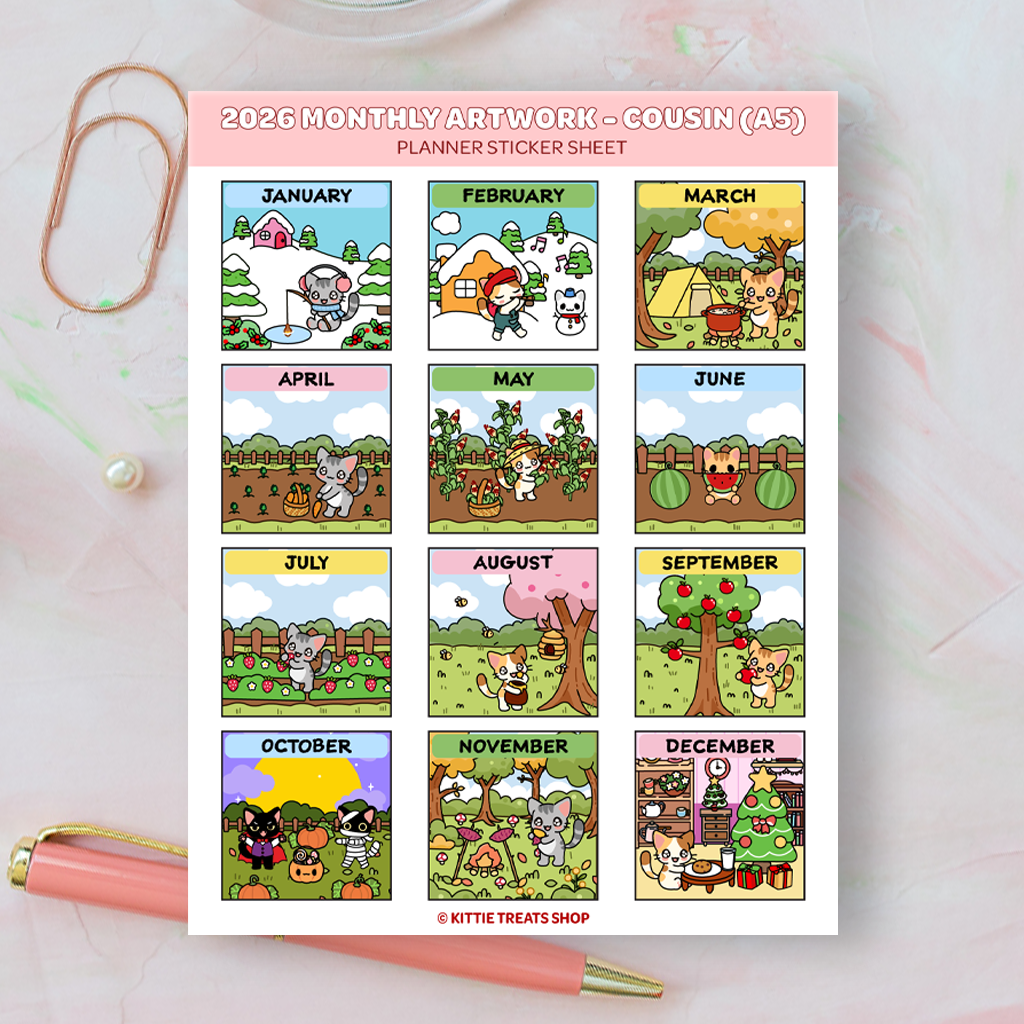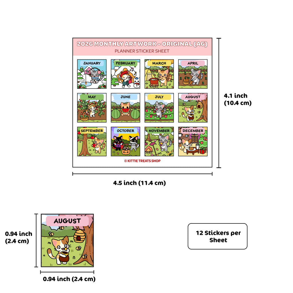 - Quantity: Includes a planner sticker sheet with 12 Monthly Artwork stickers