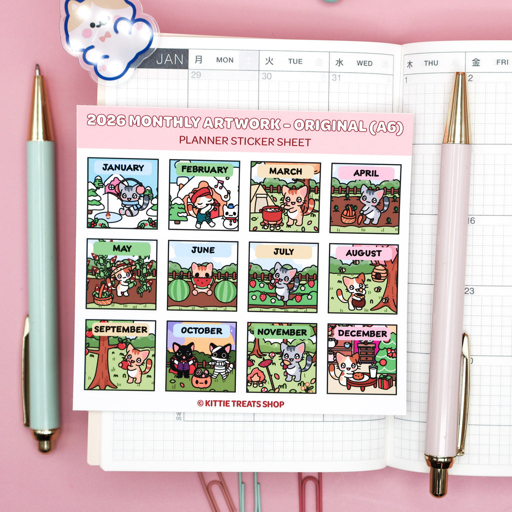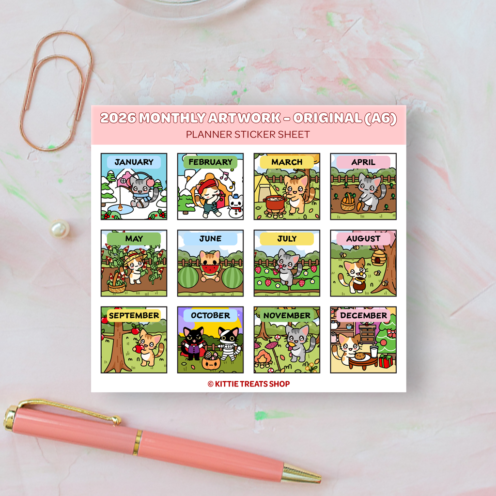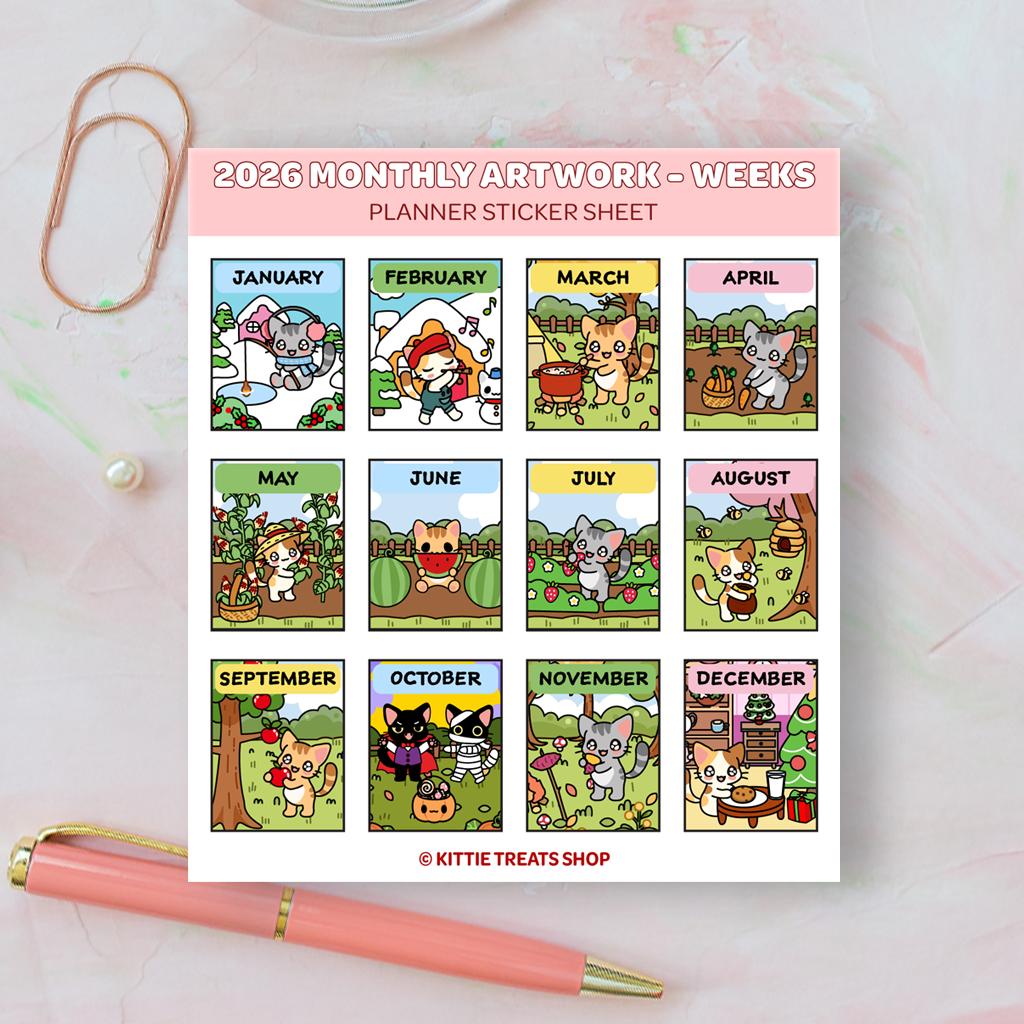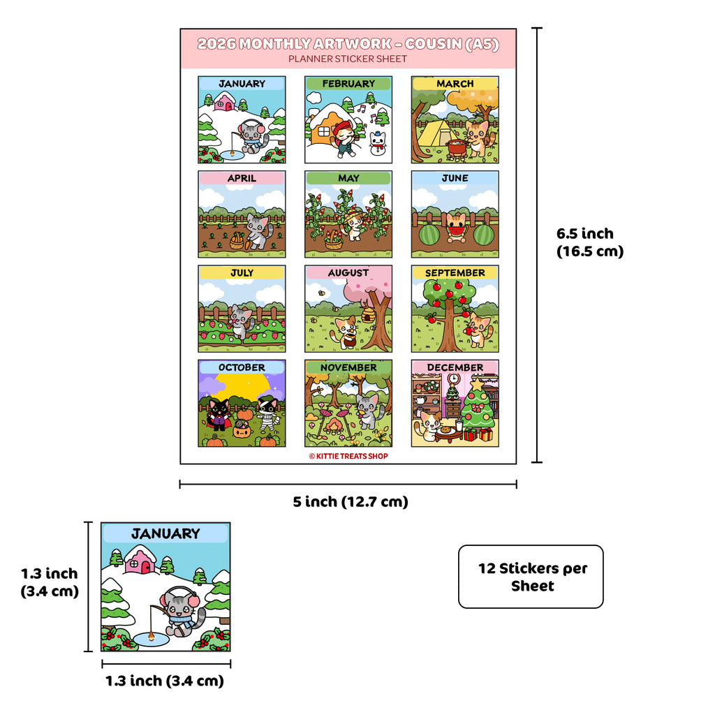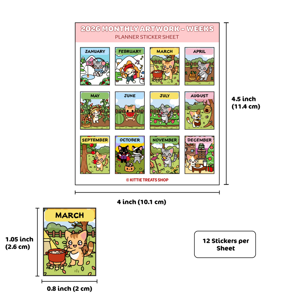 - Quantity: Includes a planner sticker sheet with 12 Monthly Artwork stickers