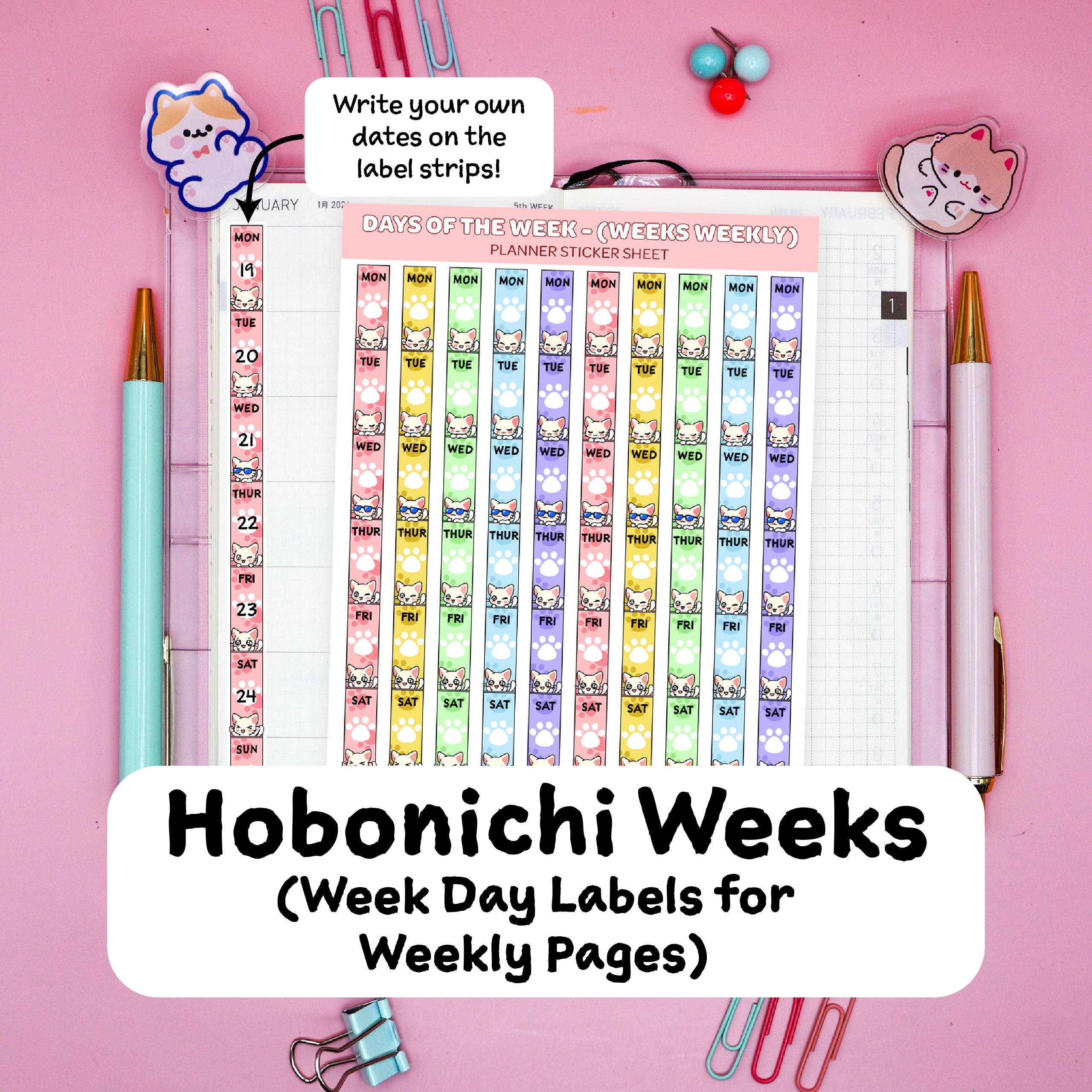 Day of the Week Labels (Hobonichi Weeks for Weekly Pages)