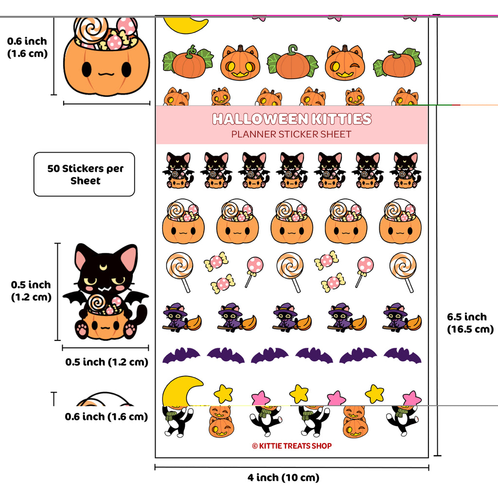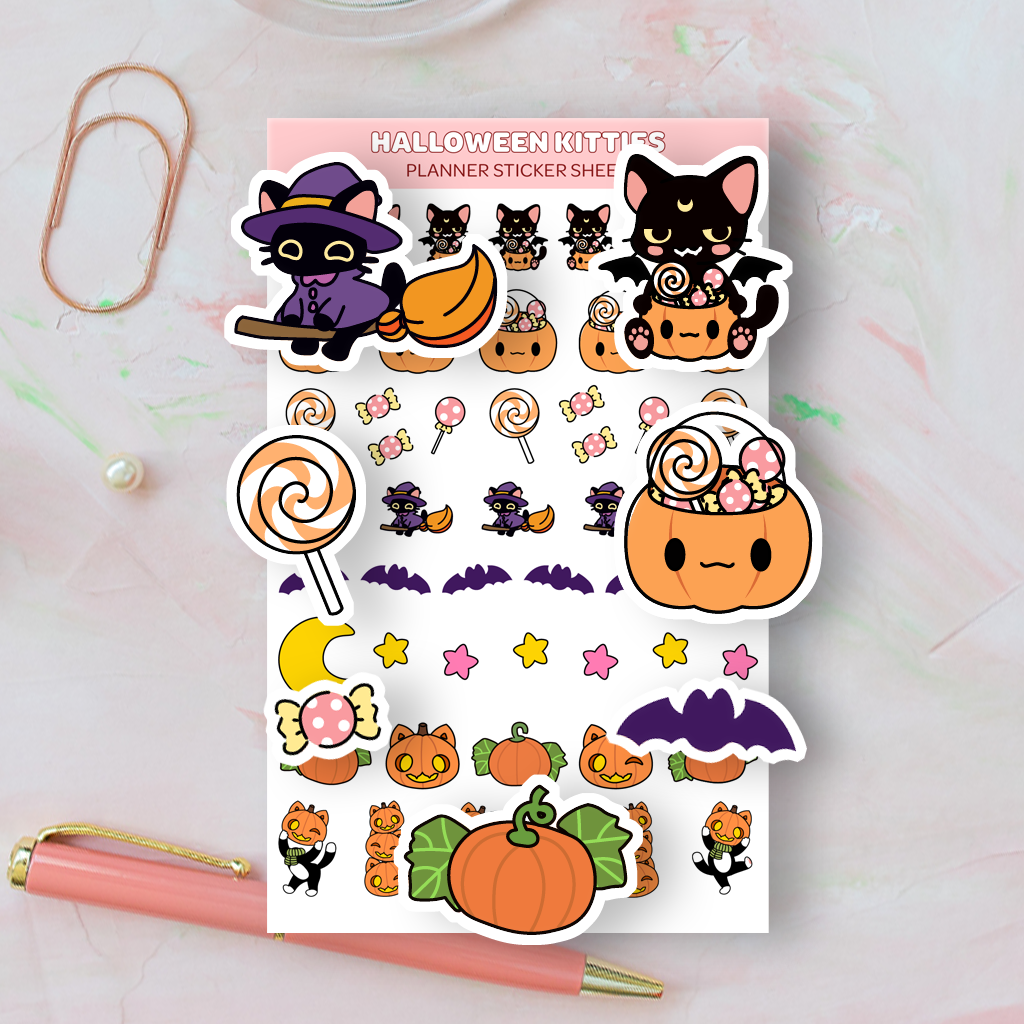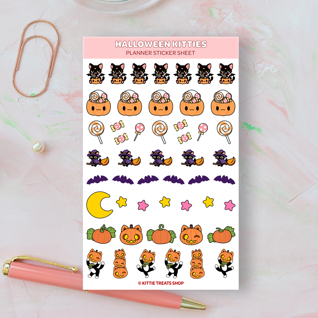This high-quality sticker sheet features 50 kawaii Halloween themed planner stickers! 🎃