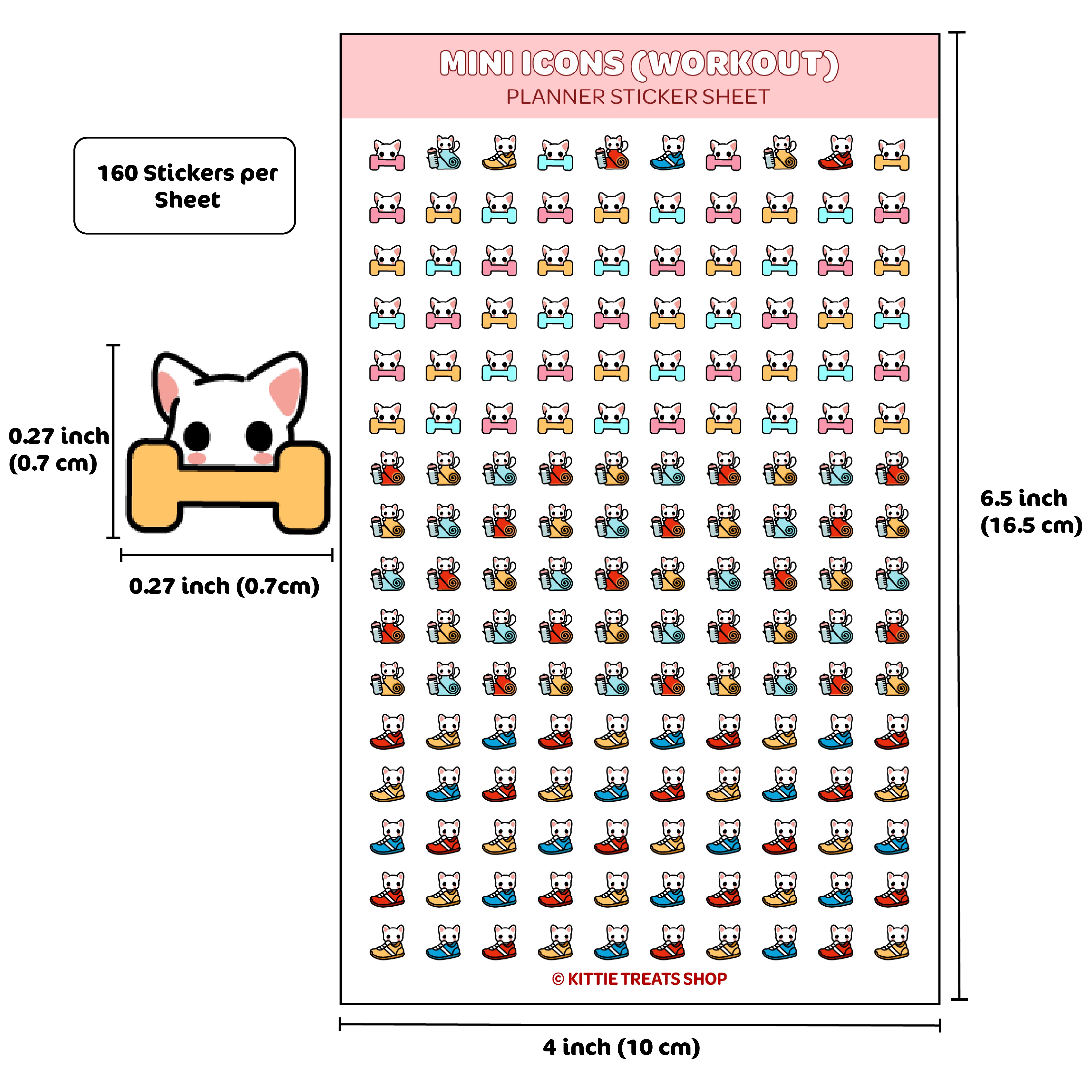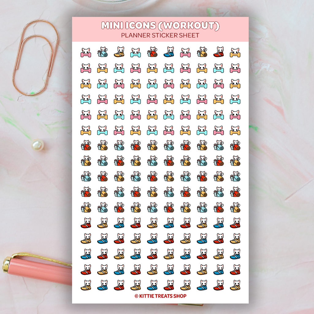 - Quantity: 1 sticker sheet contains 160 Workout mini icon planner stickers
